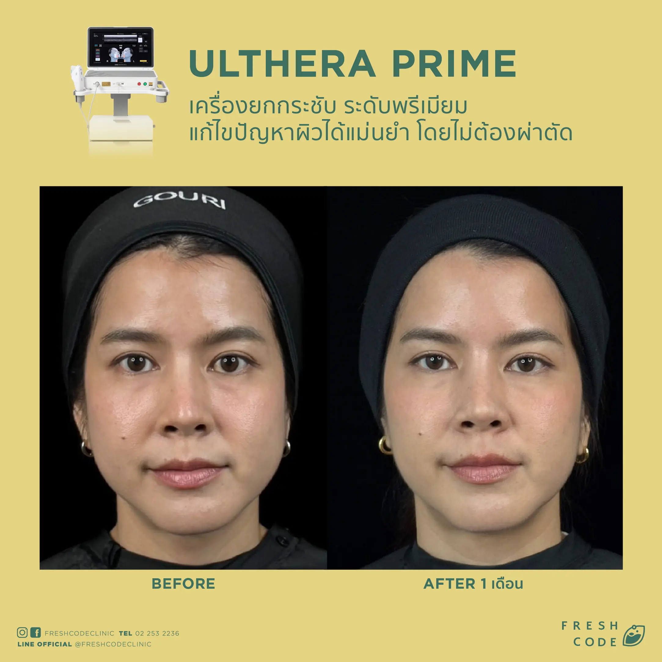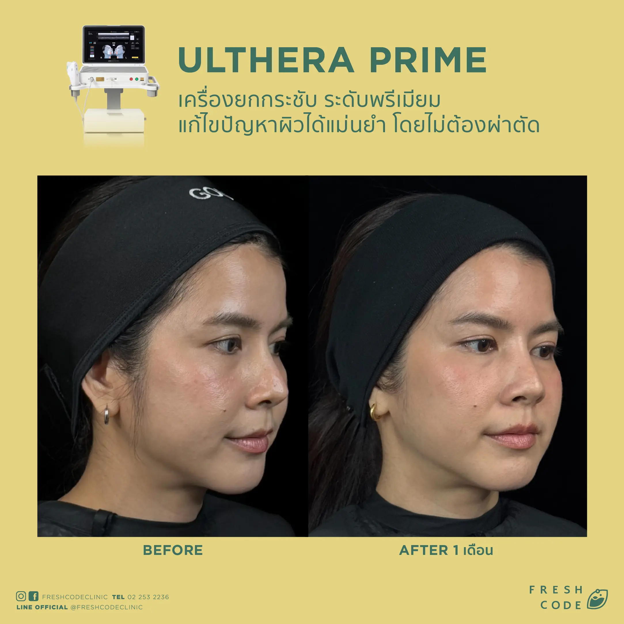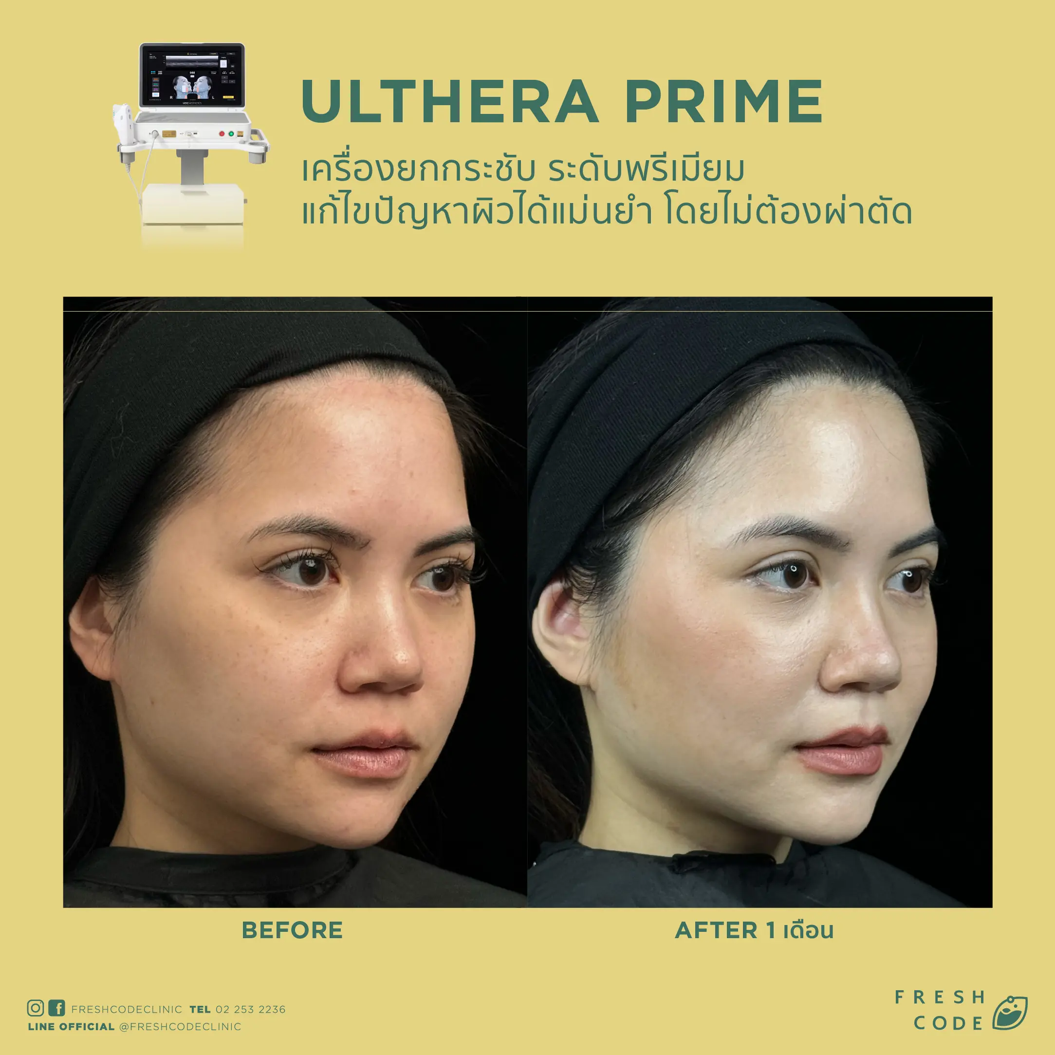 Ultherapy Prime before and after review: Results of face and eyebrow lifting using Microfocused Ultrasound technology at Fresh Code Clinic.