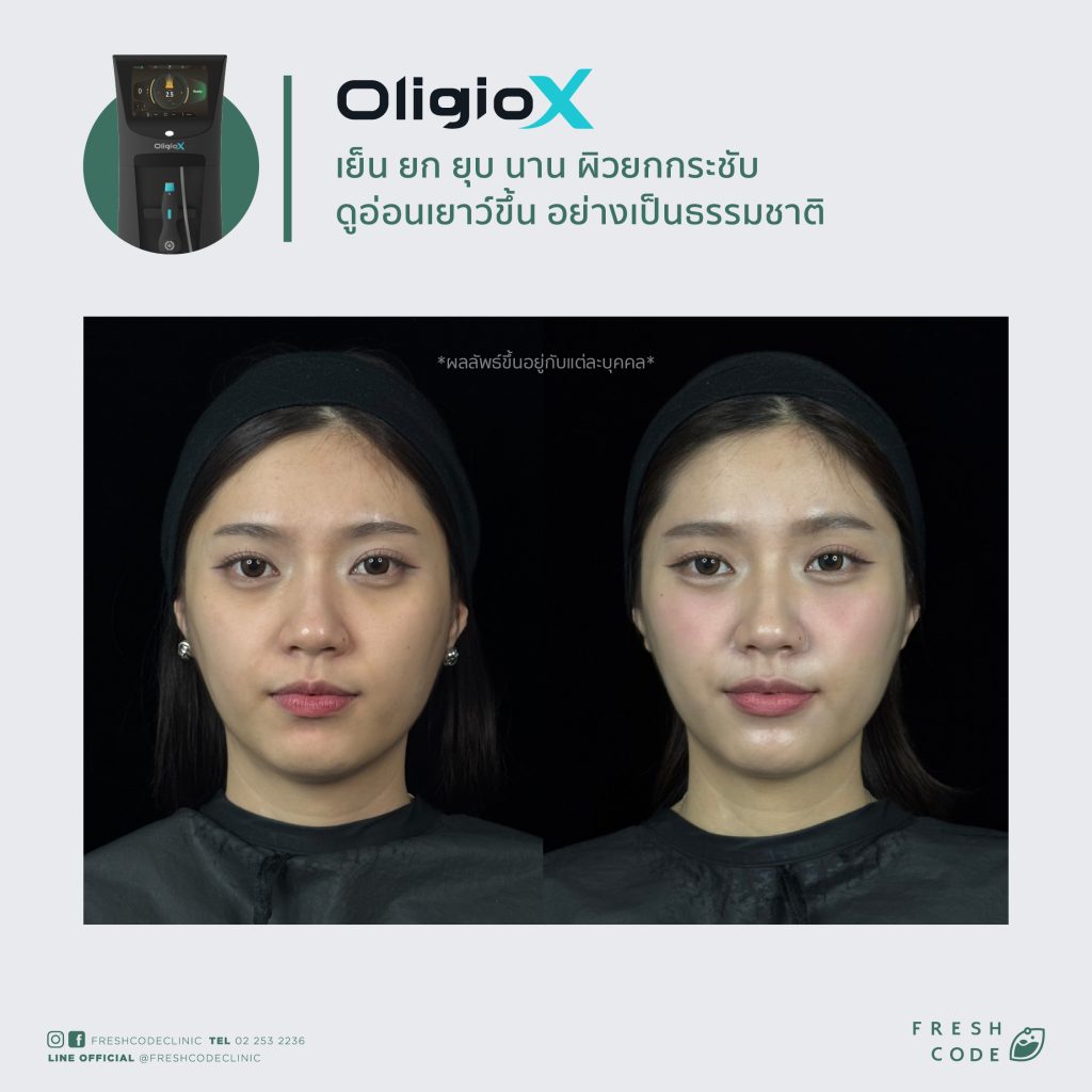 Oligio X ใช้พลังงานคลื่นความถี่วิทยุแบบขั้วเดียว (Monopolar RF) ส่งความร้อนลงสู่ชั้นผิวลึกอย่างสม่ำเสมอ ความร้อนจะช่วยกระตุ้นการหดตัวของคอลลาเจนเดิม และกระตุ้นการสร้างคอลลาเจนใหม่ ส่งผลให้ผิวดูแน่น กระชับ และเรียบขึ้นในระยะต่อเนื่อง